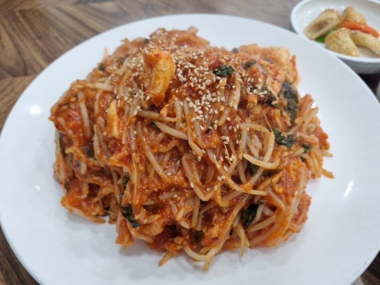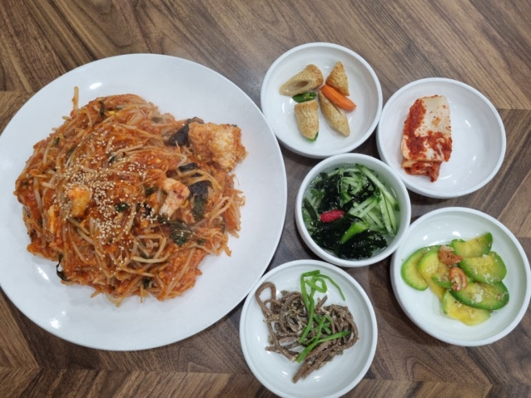 식사가 나오기 전까지 반찬은 고구마를 먼저 내어 주는데 반찬들도 하나하나 맛이 괜찮다. 반찬은 거의 동일하게 나오는데 계절에 따라 조금 바뀌기도 하는데 대체적으로 신선하고 맛있다. 고구마는 처음에 배고파서 하나를 다 먹으면 나중에 아귀찜을 먹을 때는 배가 빨리 부르기도 한다. 묵도 부드럽게 맛있어서 양념장과 같이 한입 먹으면 부드럽게 먹기가 좋고 샐러드도 아삭하니 신선하게 맛있다.
