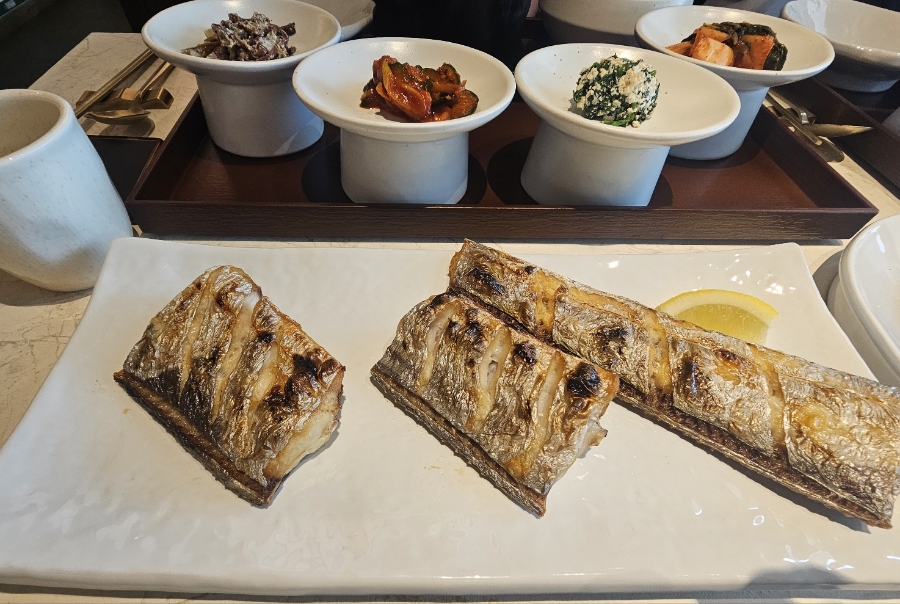 갈치구이는 꽤 크기도 크고 잘 구워져서 맛있고 레몬도 한 조각 나와서 깔끔하게 좋다. 갈치의 살도 두툼해서 먹기가 좋은 거 같다.