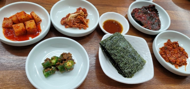반찬의 종류는 그리 많은편은 아니지만 깍두기, 김치, 깻잎, 고추된장무침, 김 등이 나와서 시원한 국물에 고소한 김을 따끈한 밥에 싸 먹어도 좋다. 대구탕도 시원하게 대구도 제법 많이 들어가 나와서 부드럽게 맛있고 미나리 덕분에 시원함을 더해준다.