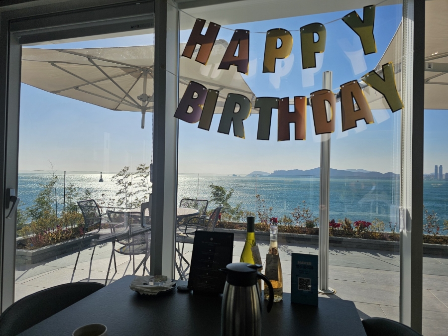 해운대 한우반상은 미포항 근처로 바닷가 근처에 있어서 식사장소에서도 창가쪽으로 자리 잡으면 해운대 바다를 보면서 식사를 즐길수 있다. 창가 한켠에는 해피버스데이도 있어서 생일 모임 장소로도 좋다. 한정식을 좋아 하는 부모님과 식사하기에도 좋고 가족모임 장소도로 인테리어도 이쁘고 나오는 식기구도 모두 깔끔해서 음식을 눈으로도 즐기기에도 좋다.