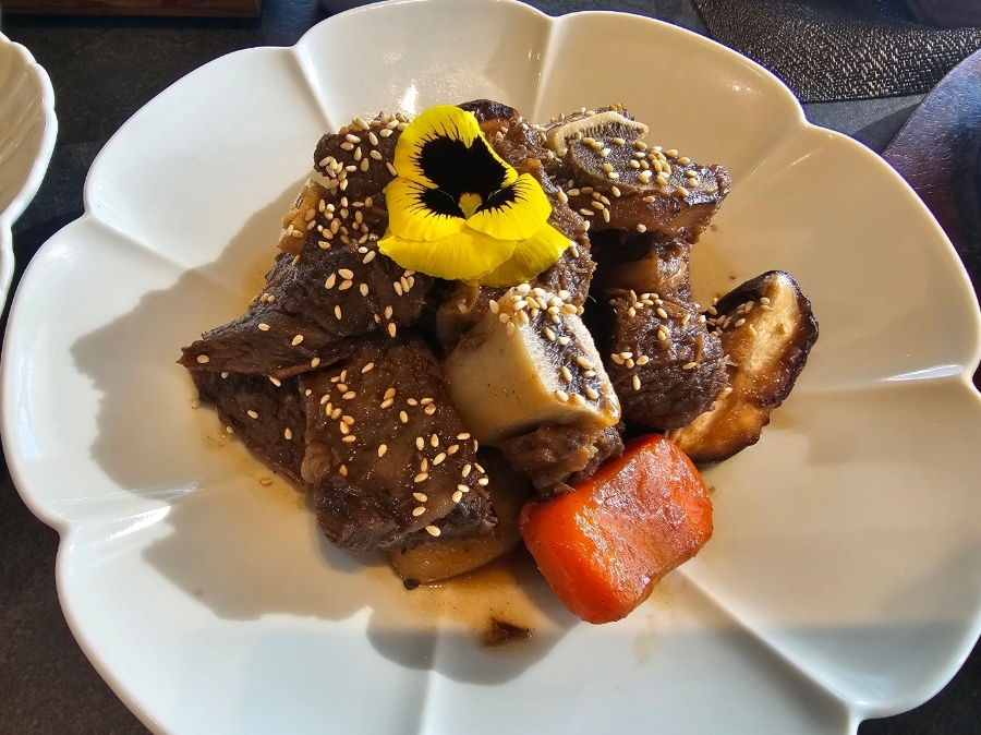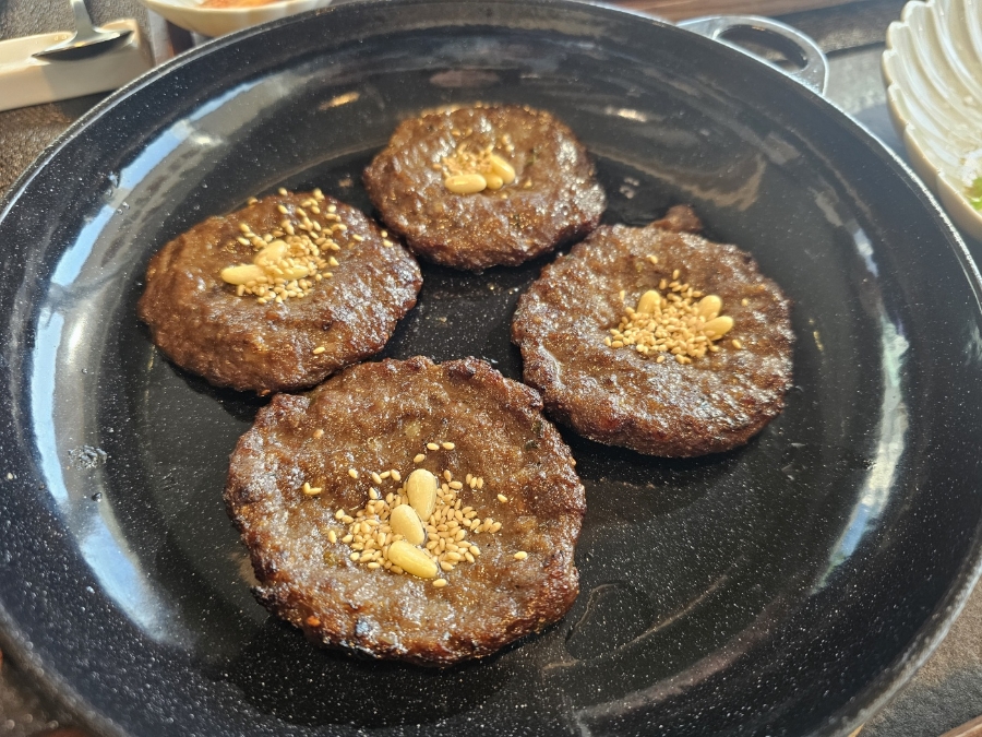 갈비찜도 달달한 양념과 부드러운 고기에 이가 좋지 않은 부모님이 드시기에도 부드럽고 맛있다. 앙이들도 좋아할 맛이고 떡갈비에는 고소하게 참께와 잣이 더해져 감칠맛을 더해준다. 떡갈비도 식감이 부드러워서 먹기에 좋았다.